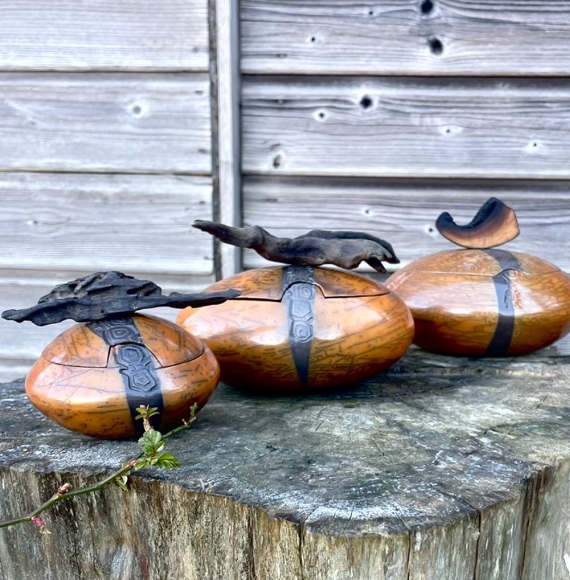 J’utilise une technique qui associe gestes contemporains et ancien savoir-faire. La terre récoltée devient la matière vivante de mes créations, porteuse d’histoire et de lien avec la nature. J’appose des sigillées qui confèrent à chaque pièce une identité singulière et symbolique. Les craquelures issues de la cuisson révèlent la beauté de l’imperfection et enrichissent l’âme de mes œuvres. Mon travail s’inscrit dans l’art de la céramique, où chaque pièce est façonnée avec soin et précision