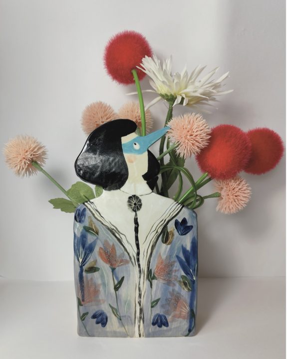 Après plusieurs mois de pratique quotidienne, le tournage n’étant pas une technique qui me corresponde, je me suis alors autorisée à travailler le modelage. Cette technique fut un vrai coup de cœur et j’ai pu commencer à travailler et développer mon projet artistique sur l’année 2022. J’ai commencé à exposer et à vendre mon travail en 2023. Je travaille à haute température des créations poétiques et imaginaires en grés et porcelaine. Le travail de la terre me permet d’exprimer beaucoup d’émotions en associant l’illustration a l’utilité d’un objet du quotidien.